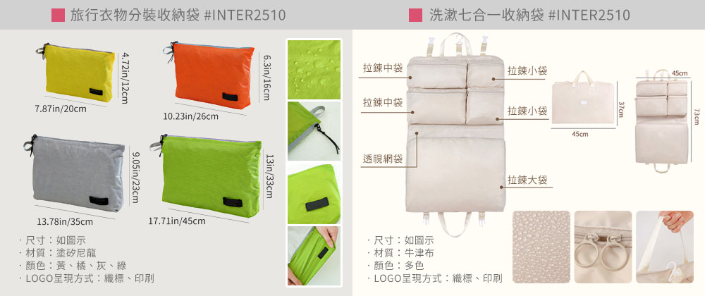 衣物收納袋 ◆ 旅行衣物分裝收納袋 ◆ 洗漱七合一收納袋 ◆ 吐司造型-洗衣旅行袋 ◆ 時尚可擴展壓縮旅行收納 ◆ 旅行衣物收納袋四件套 ◆ 樸素時光旅行收納袋 ※注意事項 : 尺寸因個人測量習慣與方式不同,誤差±5%屬正常範圍。 螢幕顯示各有差異,實際顏色以實品為主。 加入詢價車 立即詢價 分享到 商品詳情 回上一頁