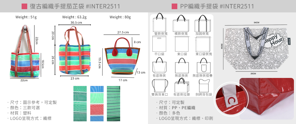 手提包 手拿袋 ◆ 復古編織手提茄芷袋 ◆ PP編織手提袋 ◆ logo針織手提袋 ◆ PVC炫彩手提袋 ◆ 毛絨背心袋刺繡包 ◆ 吉祥物帆布單肩托特包 ◆ 日系摺疊手提杯套午餐袋 ◆ 可摺疊收納背心手提袋 ※注意事項 : 尺寸因個人測量習慣與方式不同,誤差±5%屬正常範圍。 螢幕顯示各有差異,實際顏色以實品為主。 加入詢價車 立即詢價 分享到 商品詳情 回上一頁