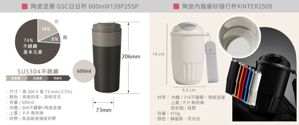陶瓷隨行杯 ◆ 陶瓷隨行車載吸管冰霸杯 ◆ 大容量陶瓷保溫雙飲車載杯 ◆ 316陶瓷冰霸杯750CC ◆ 316陶瓷彈跳保溫 ◆ 316陶瓷隨行咖啡杯 ◆ 真瓷真空陶保溫杯300_450ml ◆ 陶瓷塗層-GSC日日杯-600ml ◆ ※注意事項 : 尺寸因個人測量習慣與方式不同,誤差±5%屬正常範圍。 螢幕顯示各有差異,實際顏色以實品為主。 加入詢價車 立即詢價 分享到 商品詳情 回上一頁