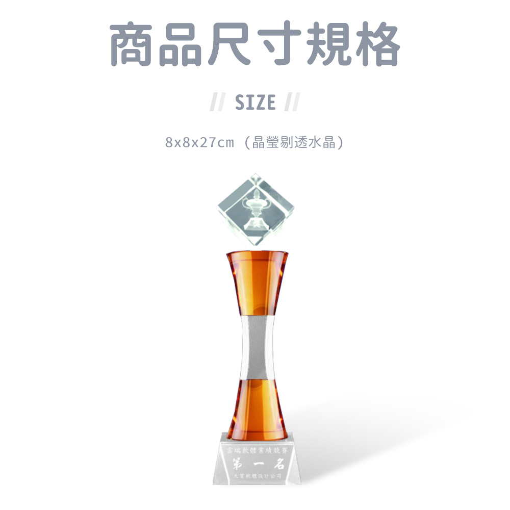 內雕水晶獎座 ◆ 可定製 ◆ 適用各式競賽 ※注意事項 : 尺寸因個人測量習慣與方式不同,誤差±5%屬正常範圍。 螢幕顯示各有差異,實際顏色以實品為主。 加入詢價車 立即詢價 分享到 商品詳情 5 回上一頁