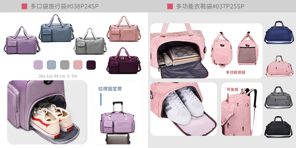 多功能旅行袋 ◆ 旅行手提袋 ◆ 乾溼分離旅行袋 ◆ 多功能衣鞋袋 ◆ 乾溼分離多口袋旅行袋 ◆ 輕便摺疊旅行袋 ◆ 可擴充衣鞋袋 ※注意事項 : 尺寸因個人測量習慣與方式不同,誤差±5%屬正常範圍。 螢幕顯示各有差異,實際顏色以實品為主。 加入詢價車 立即詢價 分享到 商品詳情 回上一頁