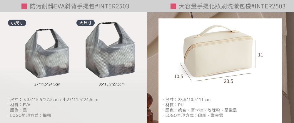 盥洗包 ◆ 防污耐髒EVA斜背手提包 ◆ 大容量手提化妆刷洗漱包袋 ◆ 繽紛旅行盥洗包 ◆ 防水旅行包盥洗包 ◆ PVC手提盥洗包 ◆ 彩色PVC手提盥洗包 ◆ 韓版多功能盥洗包 ◆ 可拆分收納包 ◆ 掛式盥洗化妝包 ※注意事項 : 尺寸因個人測量習慣與方式不同,誤差±5%屬正常範圍。 螢幕顯示各有差異,實際顏色以實品為主。 加入詢價車 立即詢價 分享到 商品詳情 回上一頁
