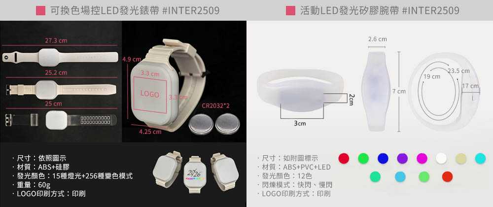 LED手環 ◆ 可換色場控LED發光錶帶 ◆ 活動LED發光矽膠腕帶 ◆ LED光纖充電發光臂環 ◆ USB充電光纖腕帶 ※注意事項 : 尺寸因個人測量習慣與方式不同,誤差±5%屬正常範圍。 螢幕顯示各有差異,實際顏色以實品為主。 加入詢價車 立即詢價 分享到 商品詳情 回上一頁